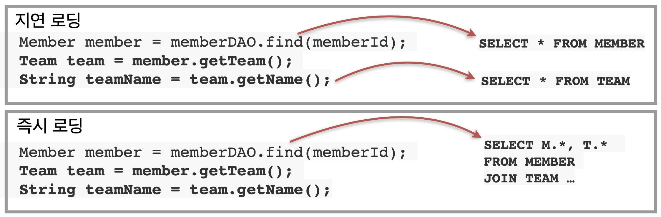 -지연로딩(객체가 실제 사용될 때 로딩)과 즉시로딩(JOIN SQL로 한번에 연관된 객체까지 미리 조회)를 상황에 맞게 사용하여 JPA의 성능을 더욱 향상시킬 수 있다. 보통, 2개 객체간의 관계를 설정할 때, 지연로딩으로 설정해놓고 나중에 성능 최적화를 위해 즉시로딩이 필요할 때에 해당 엔티티에서 fetch = FetchType.EAGER로 바꿔주기만 하면 된다.